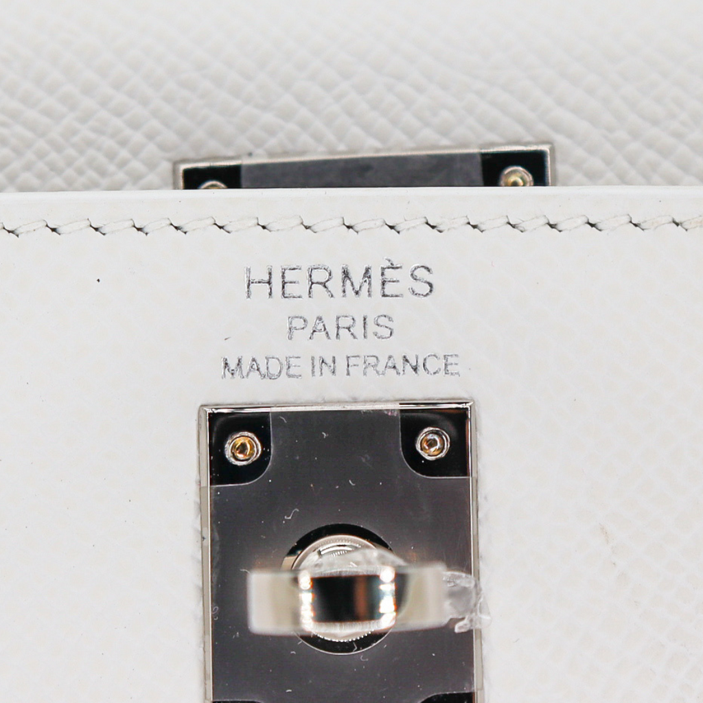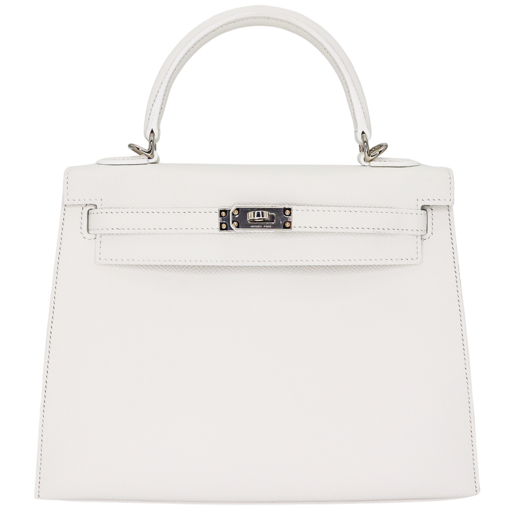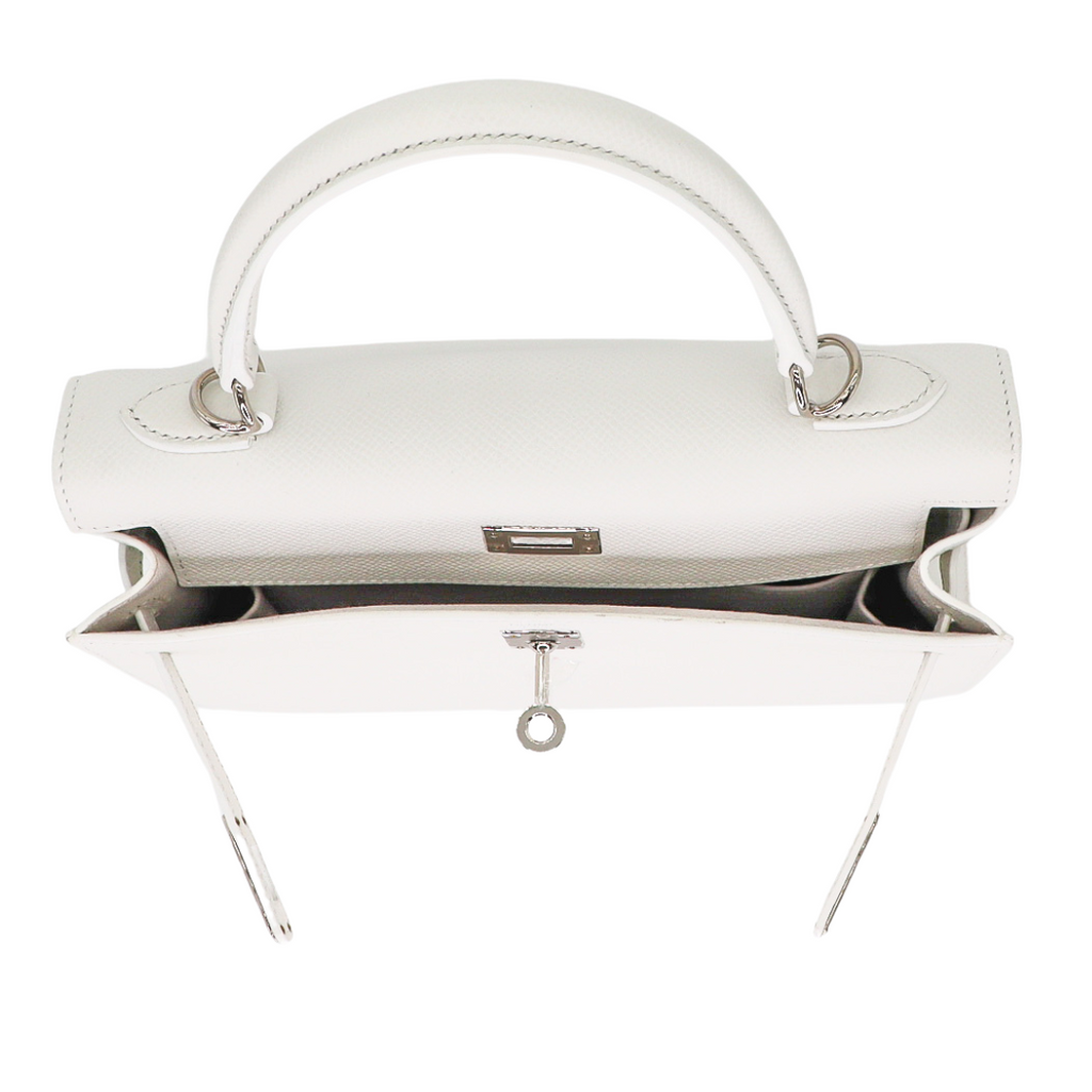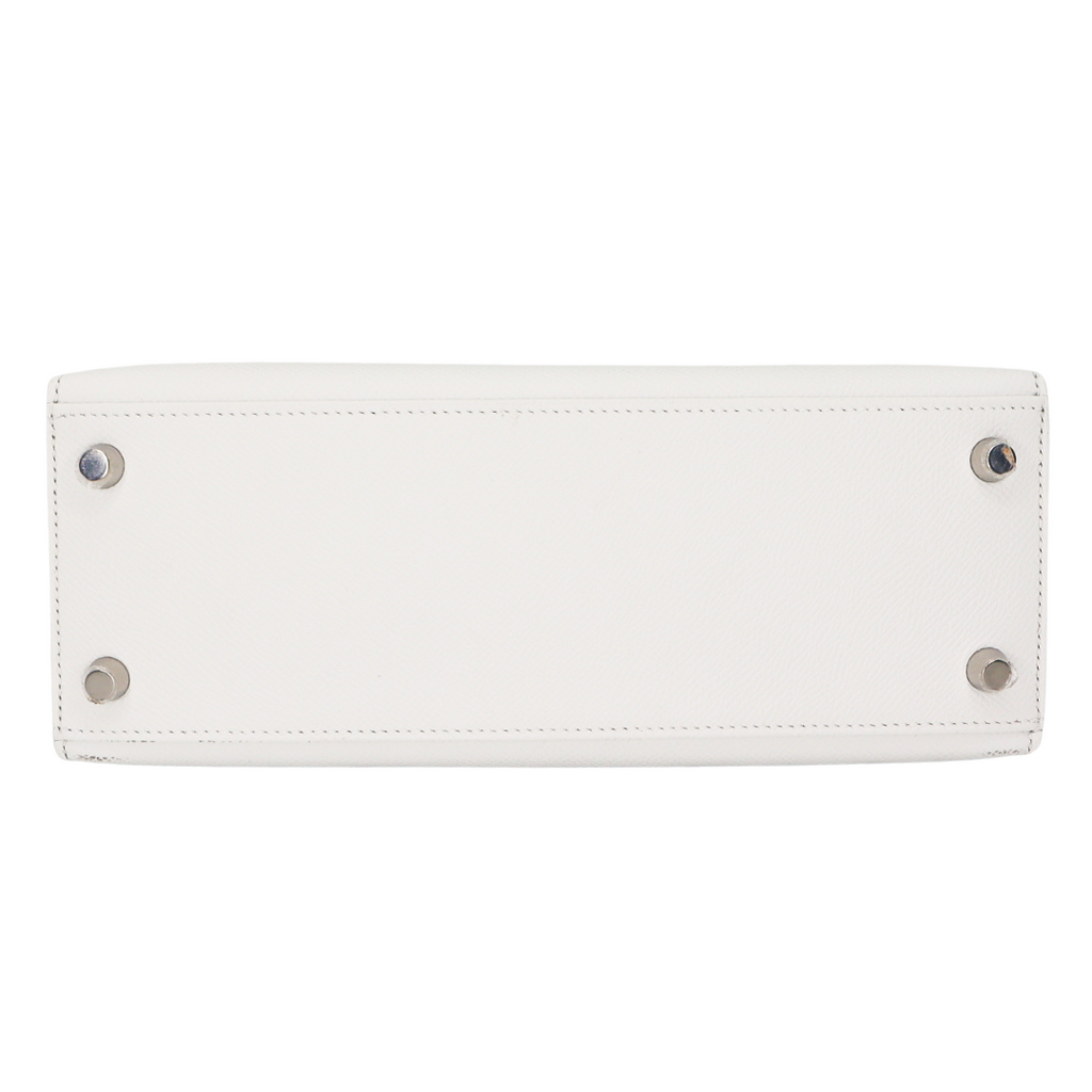 Hermès 25cm Kelly Sellier White Epsom Leather Palladium Hardware