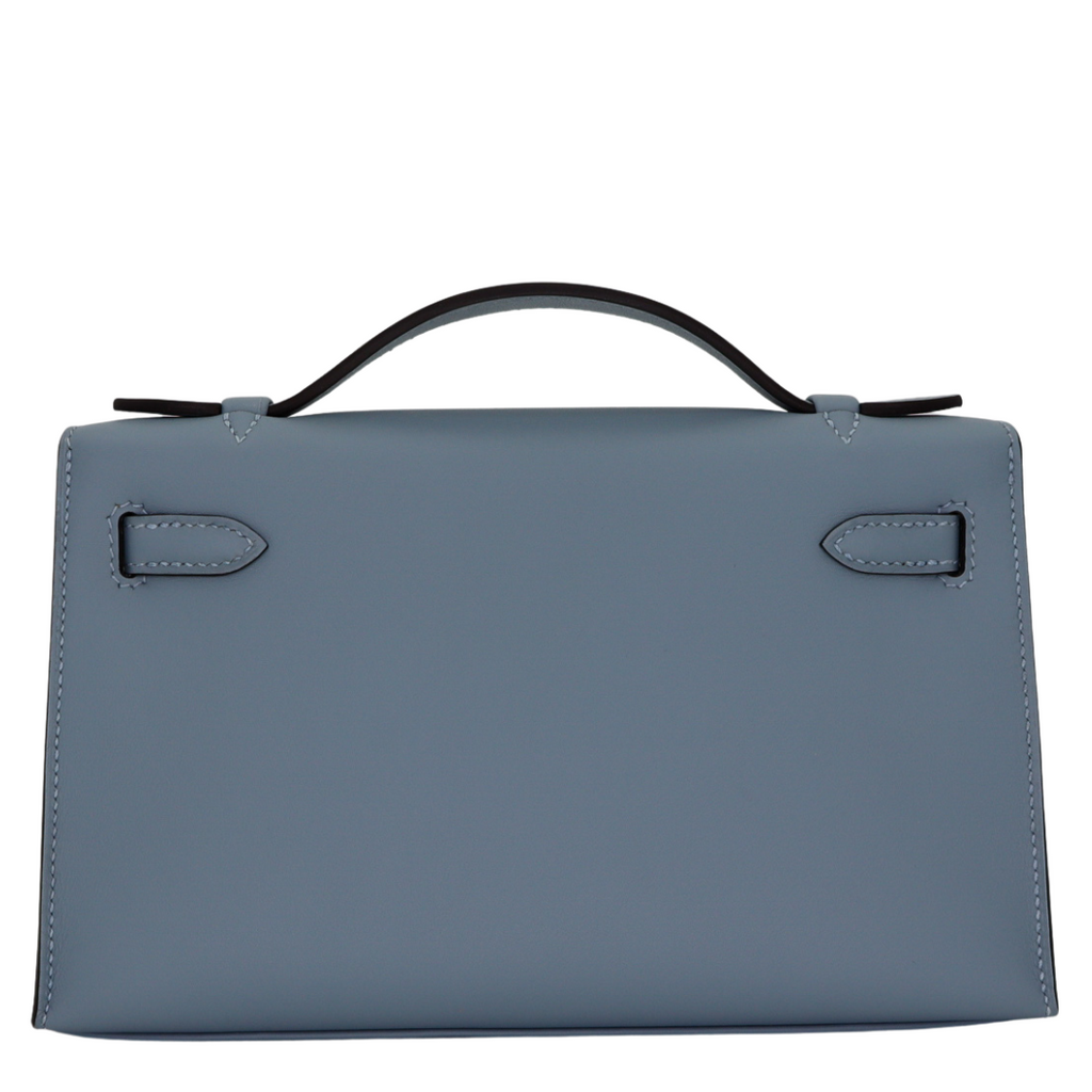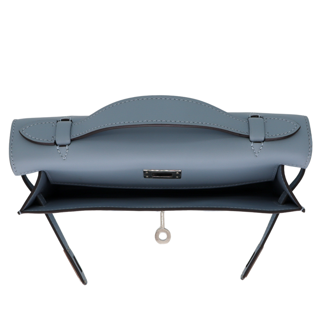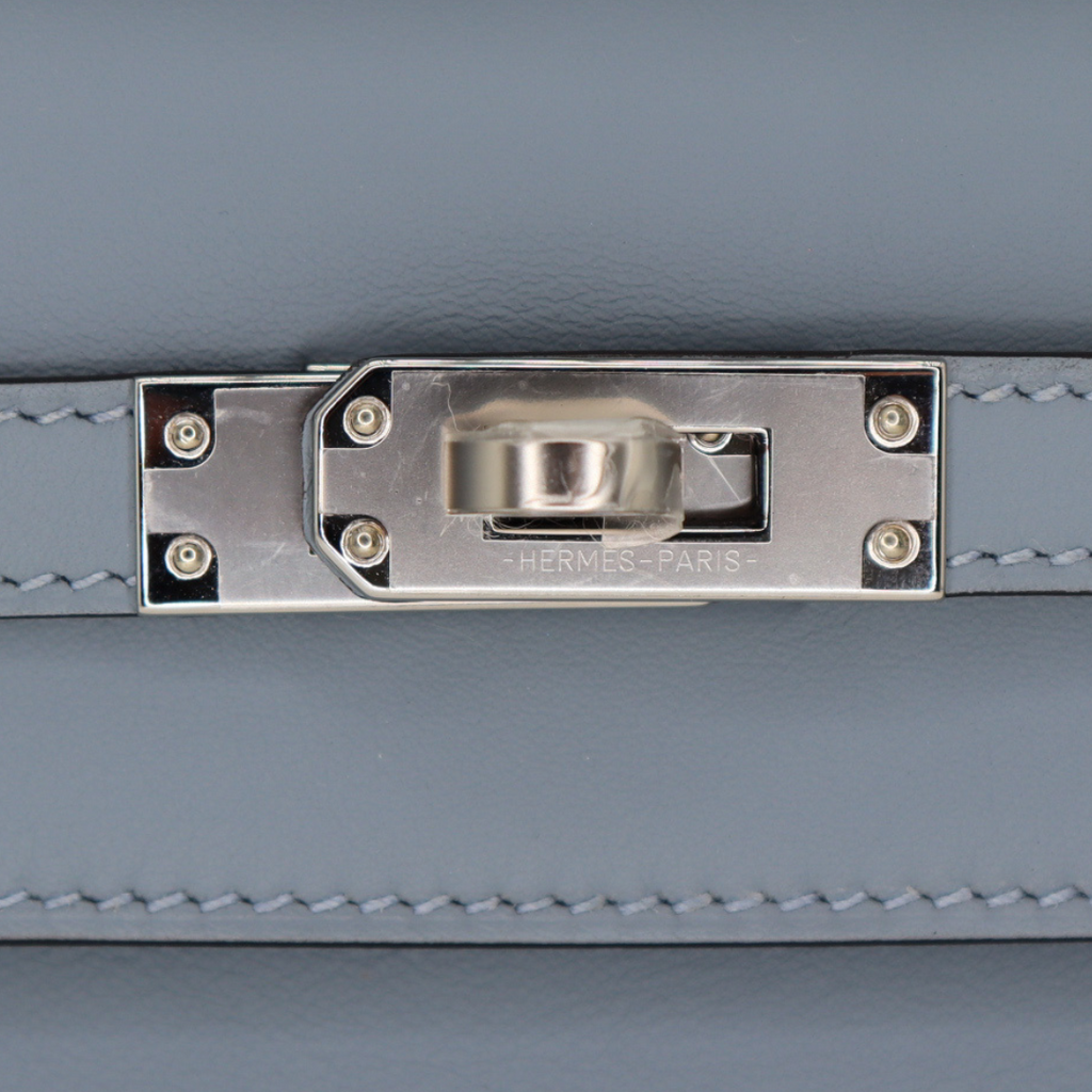 Hermès Kelly Pochette Bleu Lin Swift Leather Palladium Hardware