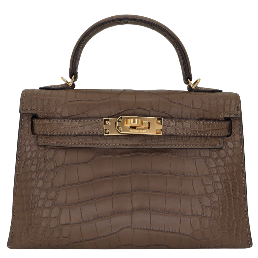 Hermès Kelly II Sellier Mini Gris Elephant Matte Alligator Gold Hardware