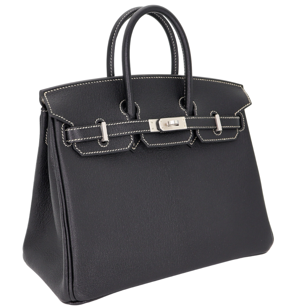 Hermès 25cm Birkin HSS Black Chèvre Leather Brushed Palladium Hardware