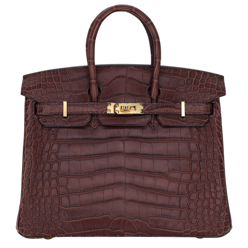 Hermès 25cm Birkin Havane Matte Alligator Gold Hardware