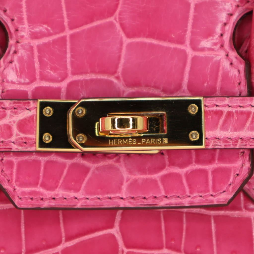Hermès 25cm Birkin Rose Tyrien Shiny Niloticus Crocodile Gold Hardware
