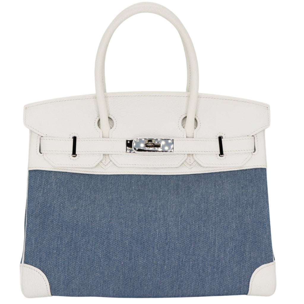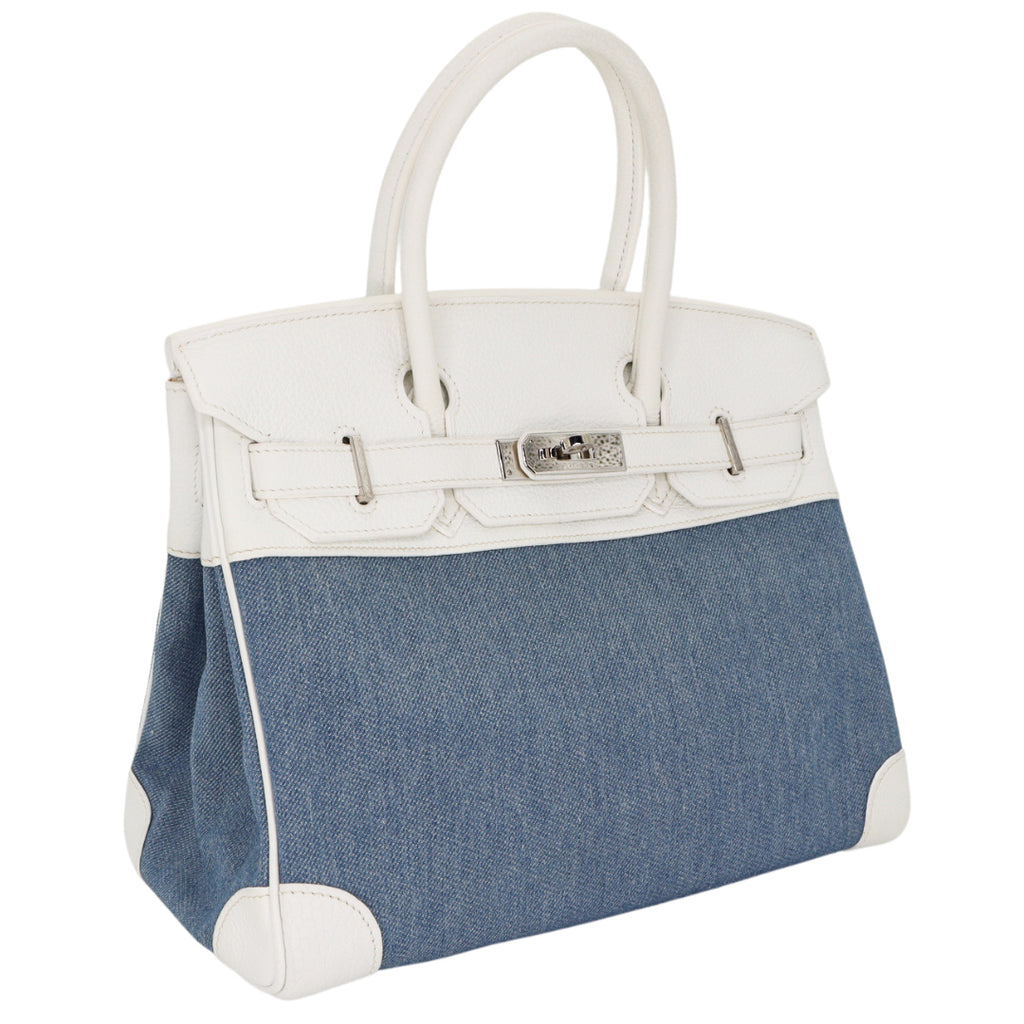 Hermès 30cm Birkin Denim/White Clemence Leather Palladium Hardware